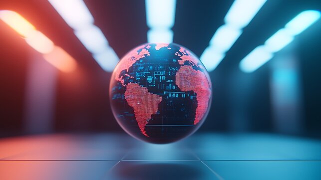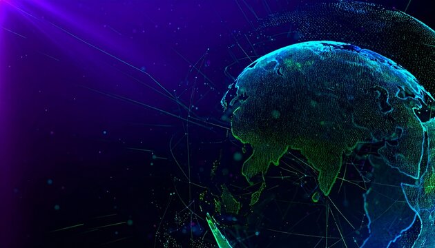 A glowing, digital globe depicting Earth, illuminated against a futuristic background, symbolizing technology and global connectivity.