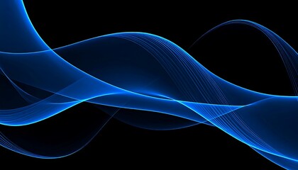 A mesmerizing abstract art piece showcasing flowing blue lines that gracefully curve and intertwine against a deep black backdrop. The interplay of light and shadow creates a sense of depth and motion