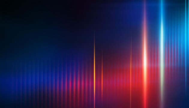 Abstract Gradient Light Beams Reflecting on a Dark Surface with Vibrant Blue Lines, Futuristic Neon Spectrum Illumination Effect.  Digital Art Composition. Patriotic Background