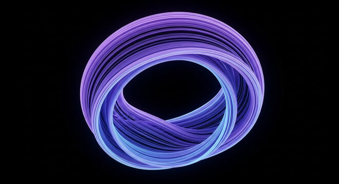 A swirling ring of purple and blue lines against a stark black background creating an abstract design