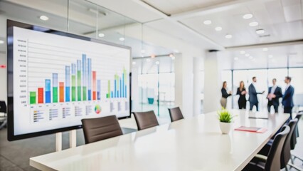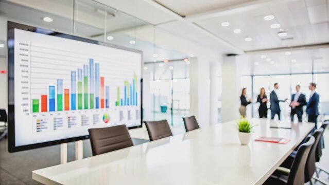 Stylized colorful bar graphs visualize data trends in sharp focus, capturing detailed analytics in a vibrant business context.