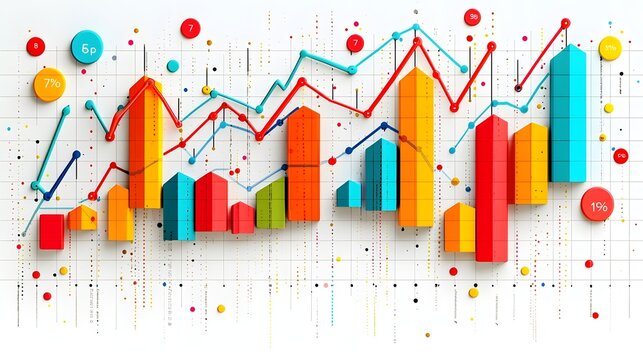 Bright and modern data visualization with dynamic line and bar charts in vivid colors displayed over a soft grid background for clarity and visual impact