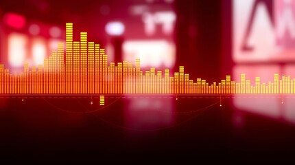 Dynamic red waveform visualization illustrating audio frequency patterns and intensity levels