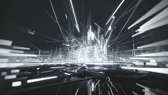 A dynamic abstract digital landscape illuminated with a network of bright lines and points