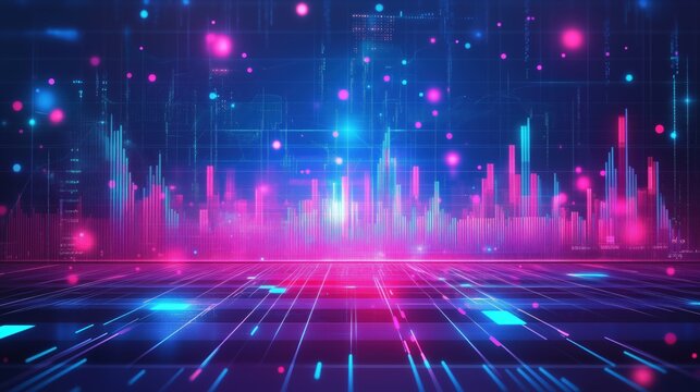 Low-Angle Abstract Data Visualization with Glowing Grid - Tech, Futuristic, Science, Technology, Network, Digital, Background, Innovation, Cyberspace.