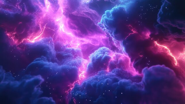 Abstract cosmic energy background with glowing particles and waves. Vibrant pink and blue nebula nebula splash.