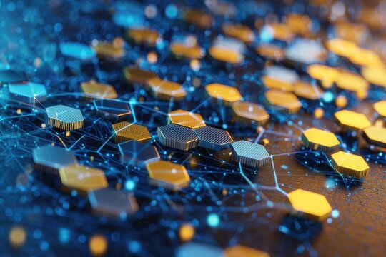 Exploration of molecular structure with glowing connections in bright blue tones evoking a futuristic and innovative aesthetic for modern design applications