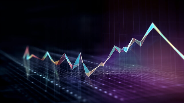 Abstract glowing finance trend chart holographic line graph digital data visualization futuristic technology blue and pink color economic growth modern business optimistic mood
