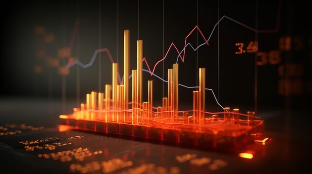 dynamic financial forecast chart analysis: 3d rendering illustrating data trends over historic period - statistic research concept