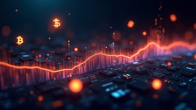 Dynamic stock market chart displaying fluctuating trends and growth percentages