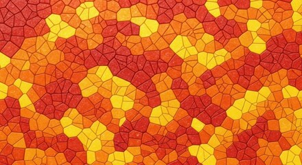 Geometric mosaic pattern with textured blocks in warm autumn colors and cool blue accents. Cubes and rectangles form a visually dynamic and abstract background design.
