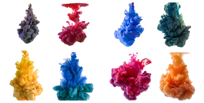 Colorful paint splashing, exploding mid-air on white background, for design.