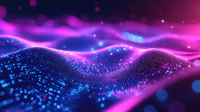 Digital wave particles creating a glowing data network
