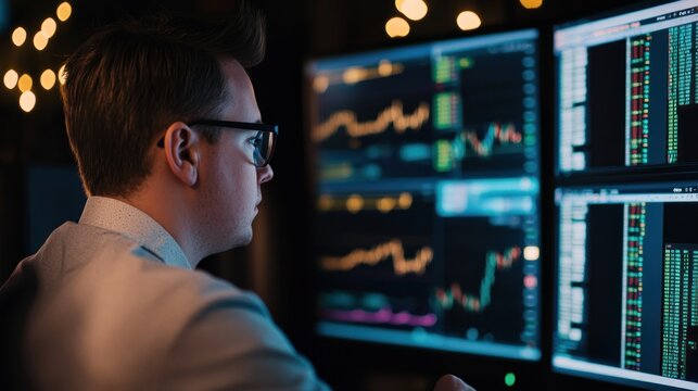 Stock market analysis and data processing in modern office environment