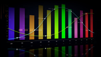Dynamic financial data analysis on modern computer screen, showcasing market trends and business growth with vibrant charts and graphs