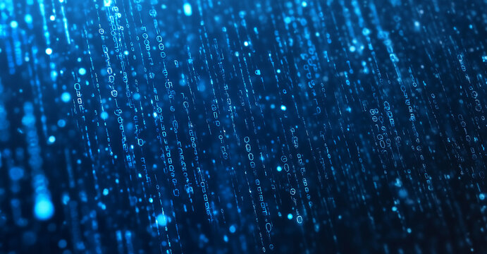 Digital patterns create a mesmerizing visual effect in deep blue tones reminiscent of a futuristic data stream