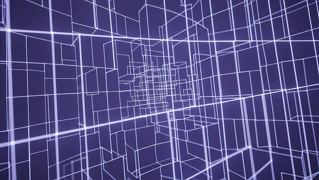 Abstract technological grid lines forming a complex digital network, visualizing interconnected data flow and futuristic communication in a dynamic virtual space environment