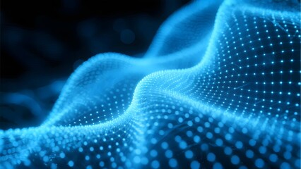 Abstract blue wave pattern composed of glowing dots and lines, creating a dynamic digital surface.