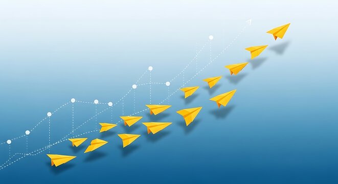 Business Paper Airplanes Flying Upward Over Graph Line in Blue Background