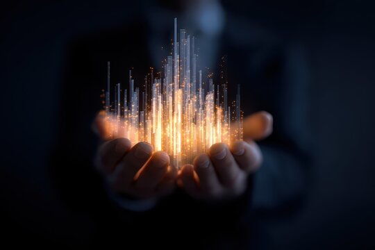 Dynamic data visualization with business professional in modern office