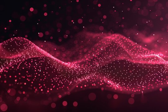 Abstract wave of glowing particles in dark red tones forming an elegant, flowing design over a black background.