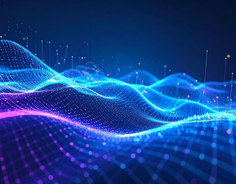 Digital Waveform Visualization: Abstract digital waveform with glowing blue and purple hues, creating a dynamic visual representation of data flow.