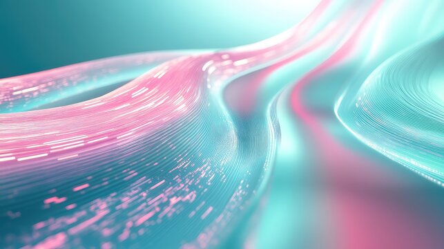 Abstract digital waves creating a dynamic background, showing bright glowing lines representing data flow and network connections in vibrant pink and blue colors