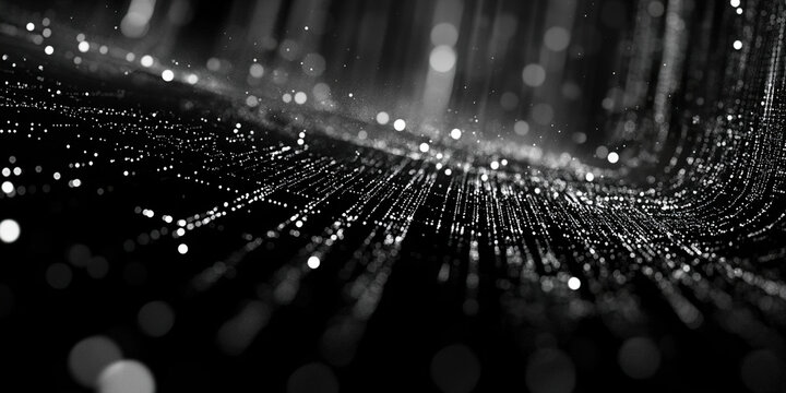 Abstract digital data visualization with illuminated lines and points on a dark background