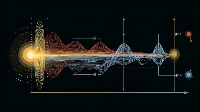 Abstract representation of data, graphs, and a central light source emitting energetic visualizations