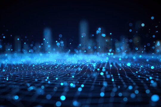 Abstract digital landscape with glowing blue points, simulating data streams and connections