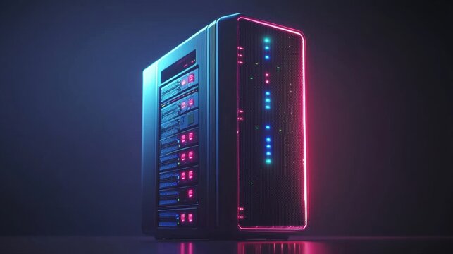 vibrant, futuristic data center with glowing servers and colorful lights creates dynamic atmosphere, showcasing advanced technology and innovation
