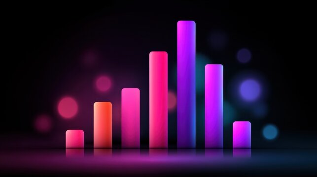 Glowing bars emerge from a dark background with blurred bokeh lights, resembling financial growth