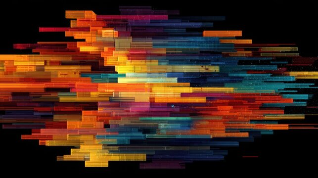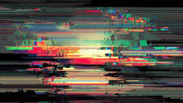 Vibrant neon glitch texture background featuring futuristic digital processing elements and abstract computer art with dynamic pixelated effects, perfect for technology-themed visuals, modern graphic