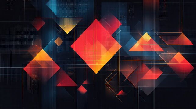 Dynamic Digital Interface With Geometric Shapes And Computer Code Images