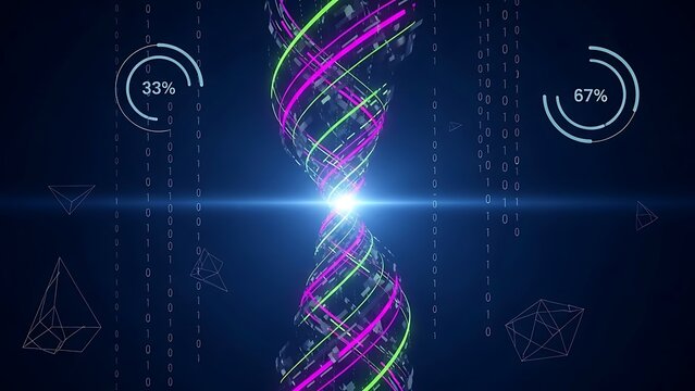 Dynamic glowing cyan numbers 0-9 with text fragments on dark background for tech data visualization themes