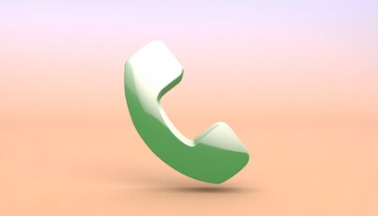 Floating Green Handset—3D Icon on Peach-Pink Gradient for Communication Design