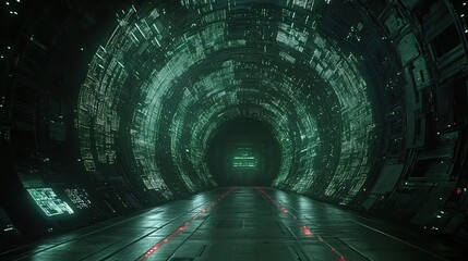 Futuristic digital data interface with green radial design
