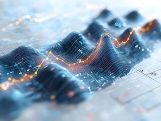 Abstract 3D visualization of upward data trends symbolizing financial growth technological progress and analytical insights