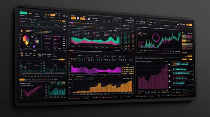 Dynamic financial analytics interface with colorful data visualizations
