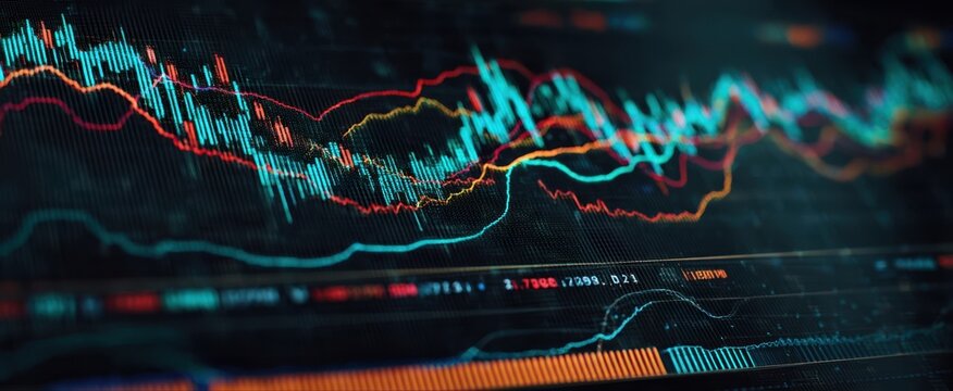 The dynamic financial graph illustrating market trends and data analysis visualizations.
