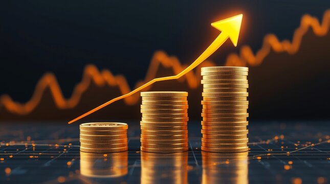 A dynamic, high-quality 3D render illustrating the concept of financial growth and investment success.