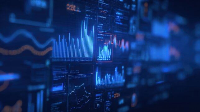 Futuristic Interface Displaying Dynamic Data Visualizations and Analytics, Ideal for Technology and Finance Concepts