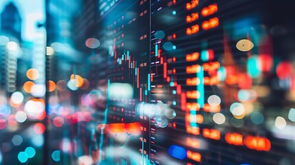 Financial data analytics with cityscape background overlay