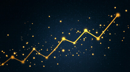 Abstract financial background with glowing line graph showcasing upward trend and dynamic motion, illuminated in warm golden tones and soft light effects