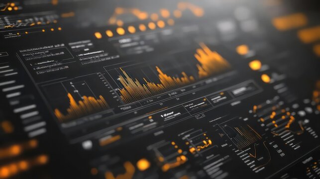 A sleek data visualization interface showcasing graphs and analytics in a dark theme.