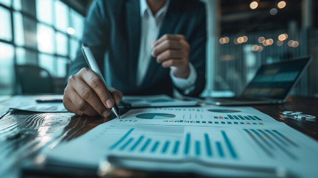 Diverse business team collaborating with financial data analytics