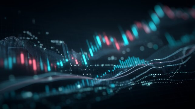 Intricate digital stock market graph showcasing dynamic trading activity on a blurred background : Generative AI