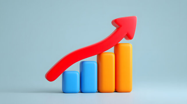 A red arrow representing strong growth trends upwards over a zigzagging blue data line on a grid