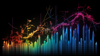 Abstract visualization of financial data displaying dynamic market trends, analysis