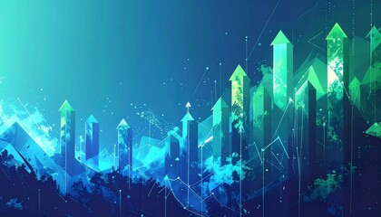 Abstract Digital Financial Growth Chart with Rising Arrows and Geometric Shapes